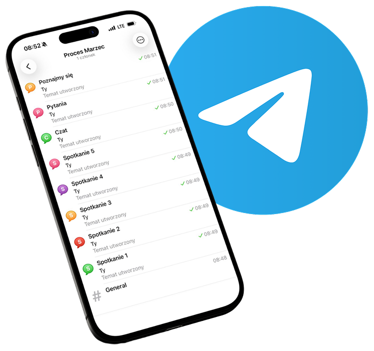 Po dołączeniu do procesu otrzymasz dostęp do zamkniętej, prywatnej grupy na Telegramie, stworzonej wyłącznie dla uczestników procesu.